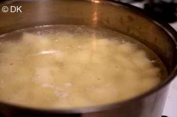 1. Place the chopped potatoes in cold and bring it a boil - about 10min. Reduce heat and simmer for another 10min until soft.Drain and set aside.