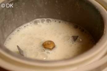 2.Meanwhile remove the outer skin of the garlic and place in a little water and M/w for 5min until soft.