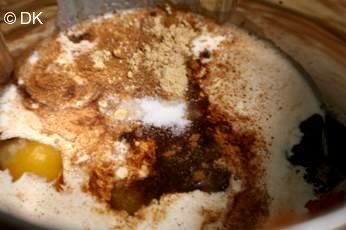6.For the pumkin filling, place all the ingredients in a food processor and pulse and process, for about 2 min. Leave the filling in the processor for the moment.