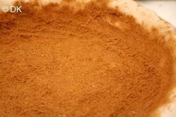 4.Trim out the excess and now top the crust with the powdered gingersnap powder until it covers the pie crust.Refrigerate again for 20 min.Preheat oven 400 F.