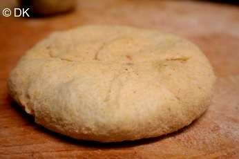 7.Now press the top of the filling with the palm of your hand until the dough gets depressed and forms into a flatbread.