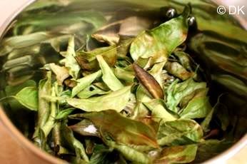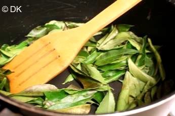 1.Dry roast the curry leaves in a skillet till the aroma hits you and the leaves look little shriveled up.