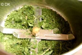 5.Cool them a bit and then add it along with the curry leaves in the processor and grind them until they become into fine powder.