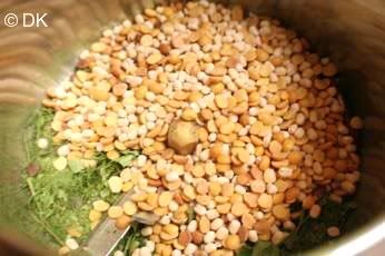 4.Now dry roast rest of the ingredients till the raw smell leaves and the lentils are looking golden brown.