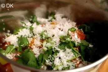 2.Now process this mixture along with cilantro and coconut and set aside.